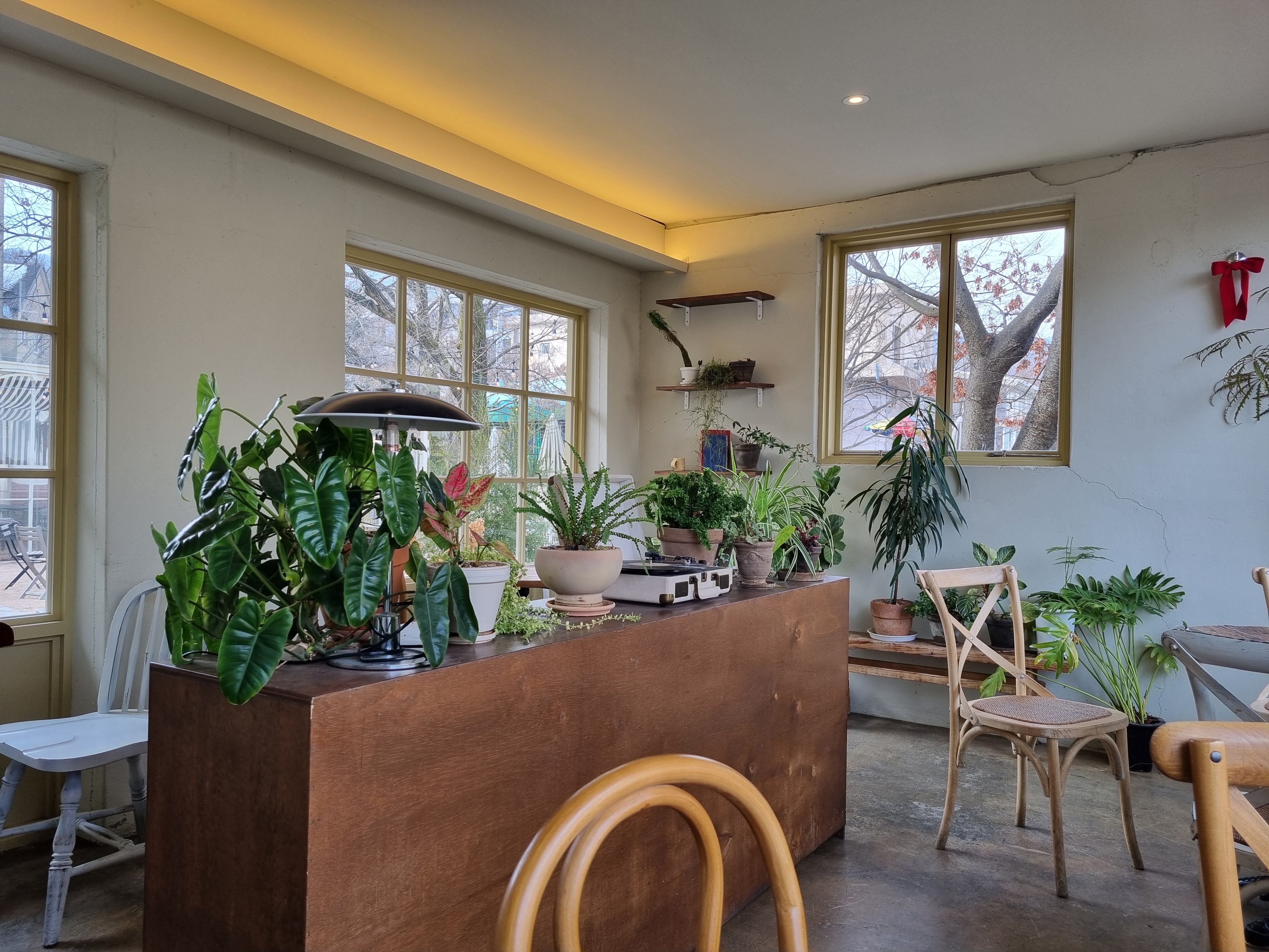 안쪽에는 작은 룸으로 꾸며져 있는데 4개의 테이블이 있다. 곳곳에 놓여 있는 화분, 턴테이블등의 소품들이 공간을 아늑하게 만들어 주는 것 같았다. 작은 룸에 자리를 잡았는데 공간이 너무 편하고 따뜻했다.