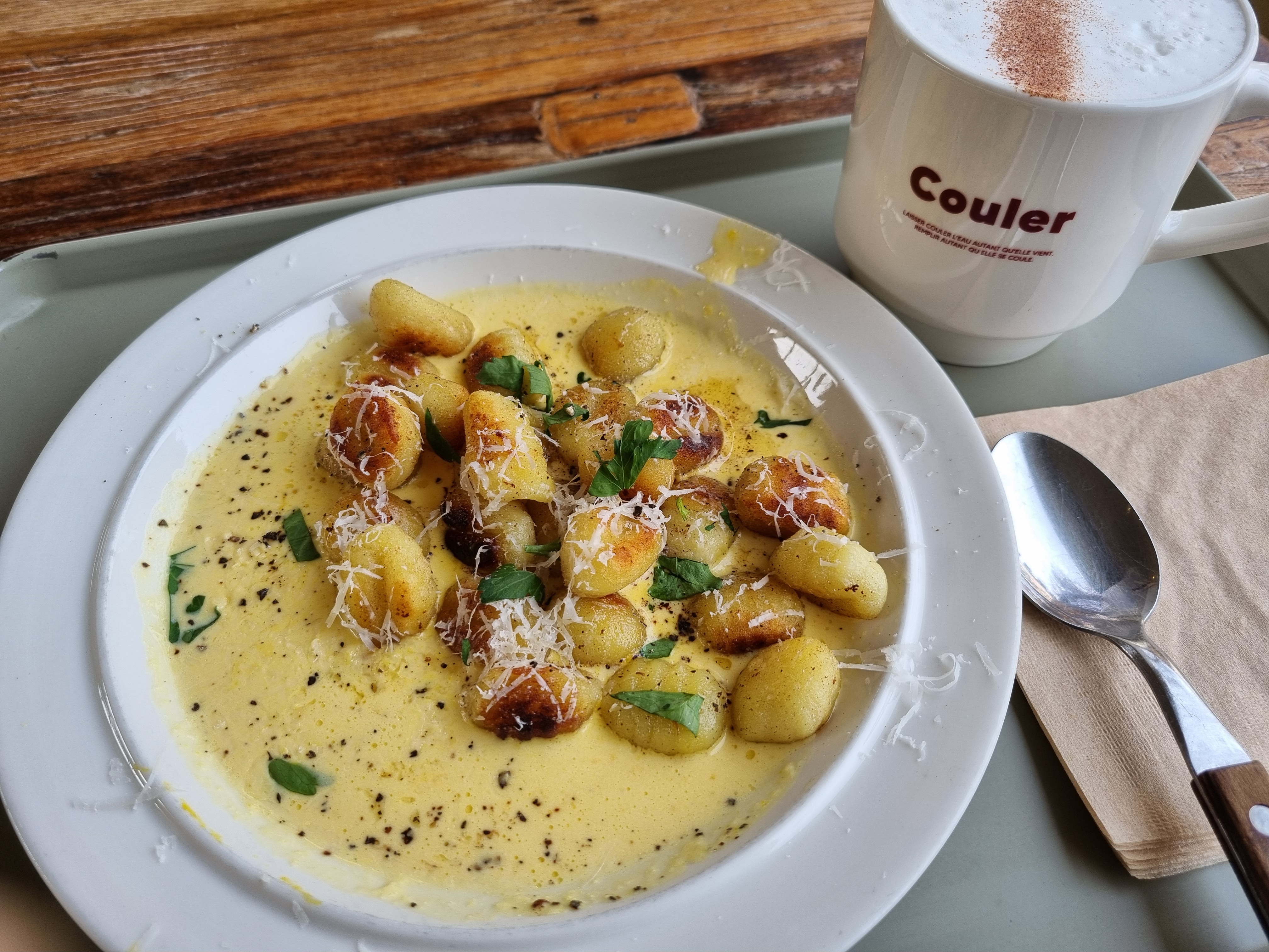 지인의 도착이 늦어지고 있어 주문을 먼저 하고 기다리고 있었다. 단호박 크림 뇨끼와 밤시나몬라떼를 주문했다. 따뜻하고 고소한 뇨끼와 시나몬과 잘 어울리는 밤라떼는 정말 맛있었고 든든한 한 끼가 되었다.