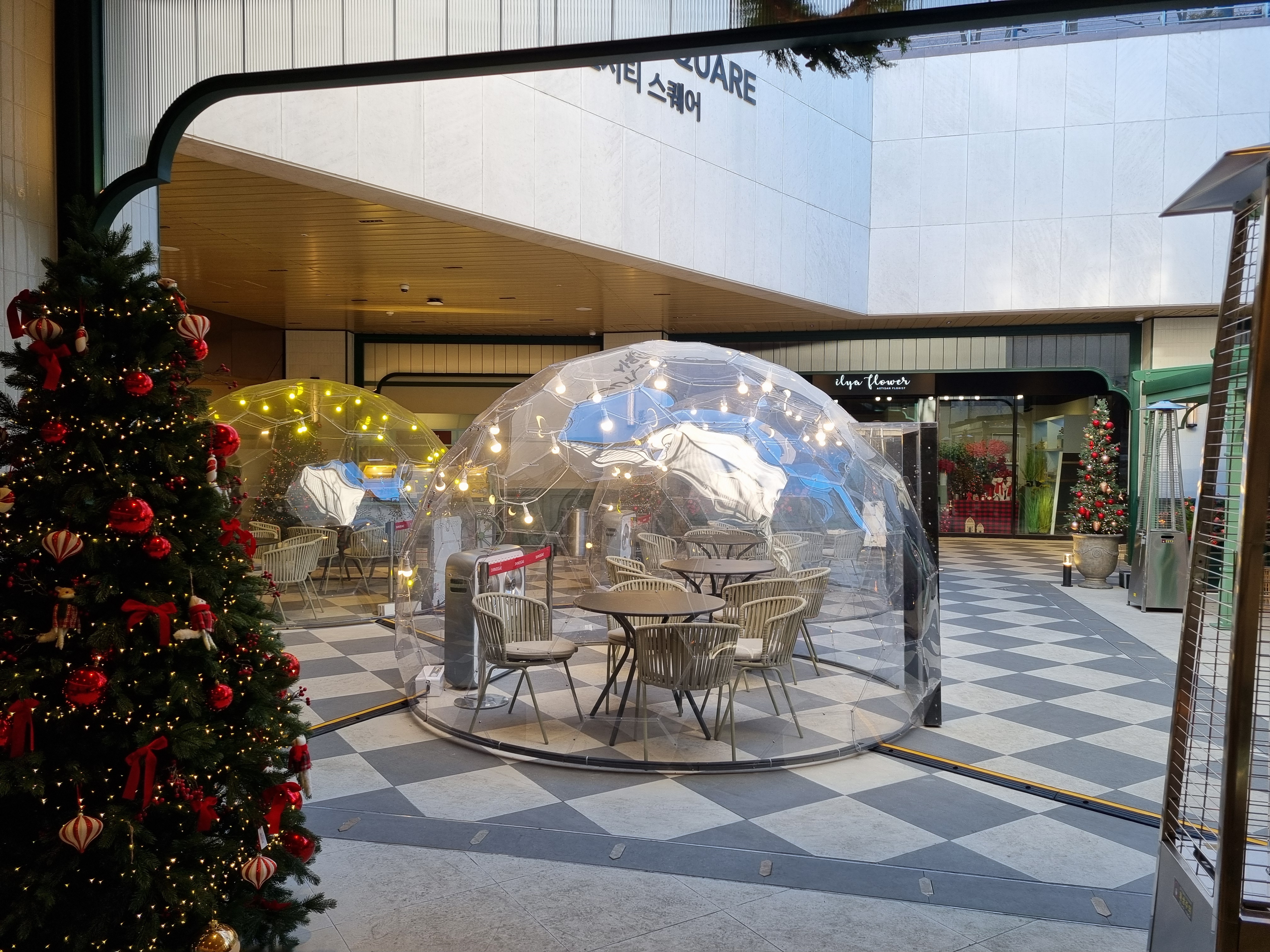 예쁜 투명돔이 설치되어 있는 것을 보게 되었다.