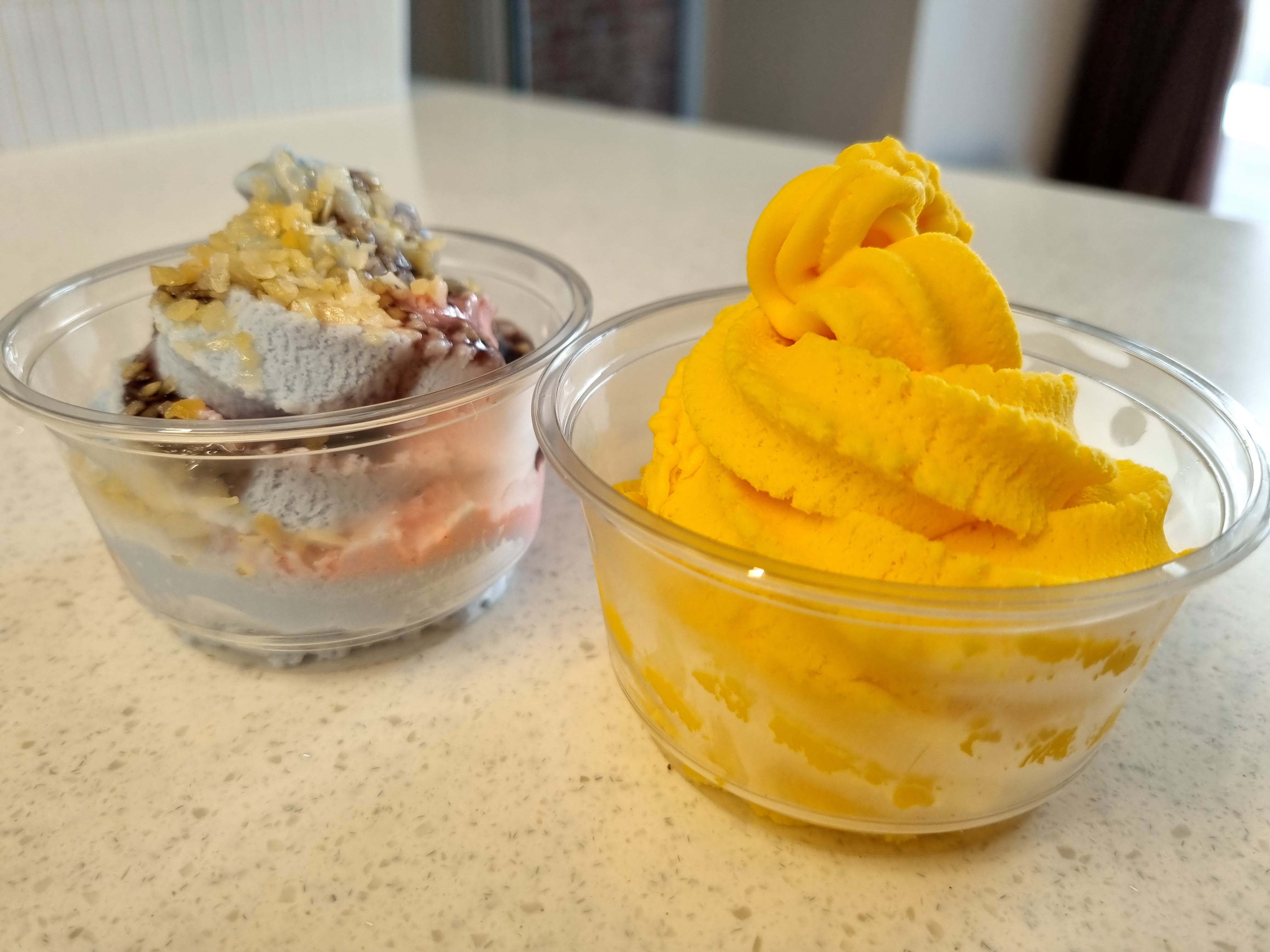 젤라또컵에는 바닐라, 초코, 초코바닐라, 딸기, 크림치즈, 플레인요거트, 블루베리요거트, 녹차, 망고, 애플시나몬 10가지 맛이 있다. 솜사탕 젤라또컵은 팝핑캔디가 뿌려져 있는데 입안에서 톡톡 터져 재미있으면서 시원한 달콤함이 너무 맛있었다. 결론은 둘 다 맛있었다! ^^