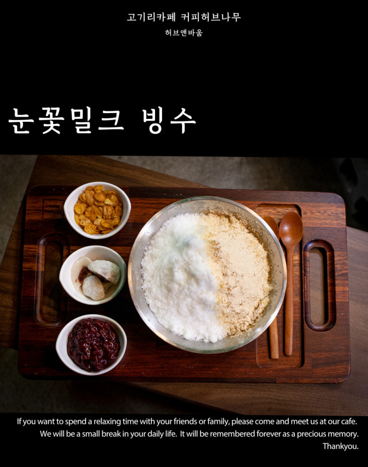 후덥지근한 여름이 다가오면 시원하고 달달한 팥빙수가 생각난다. 그래서 단골처럼 먹으러 꼭 가는 곳이 있는데 바로 고기동에 있는 커피허브나무이다.