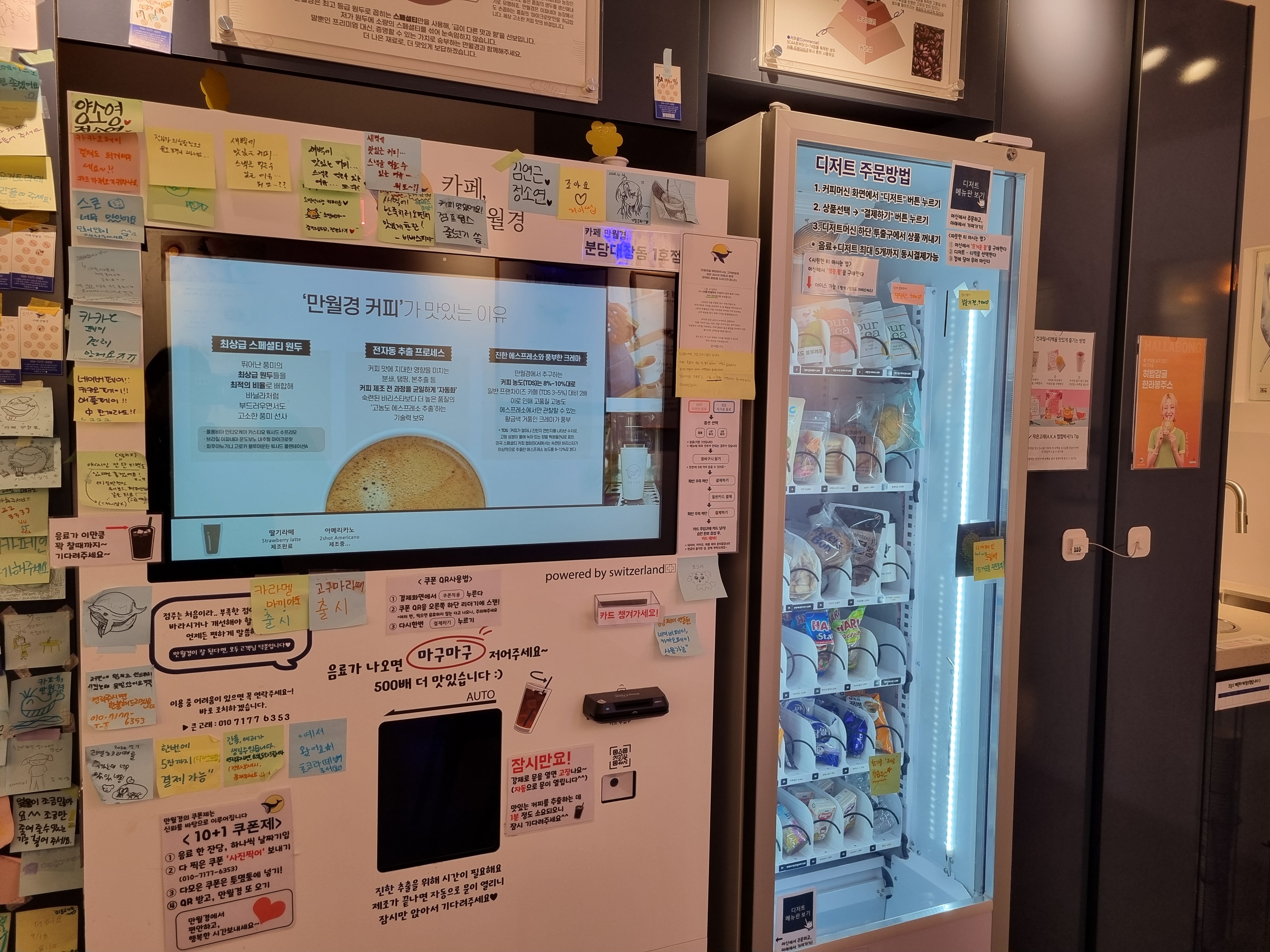 이곳을 종종 이용한다. 일을 보고 시간이 중간에 애매해질 때가 있는데 이곳에서 가볍게 커피 한잔을 즐길 수 있어서 좋다. 무인이라서 음료 주문하기도 편하고 짧은 시간 혼자서 커피를 마시기에 가격도 부담이 없었다. 개인 따라 다르겠지만 샷을 추가한 아메리카노의 쌉쌀한 향과 맛이 좋다고 느껴졌다. 매장도 청결하고 정돈이 잘되어있어서 쾌적하게 커피를 마셨다. 설치되어 있는 조명도 따뜻하게 느껴져 더 편안했는지도 모르겠다.