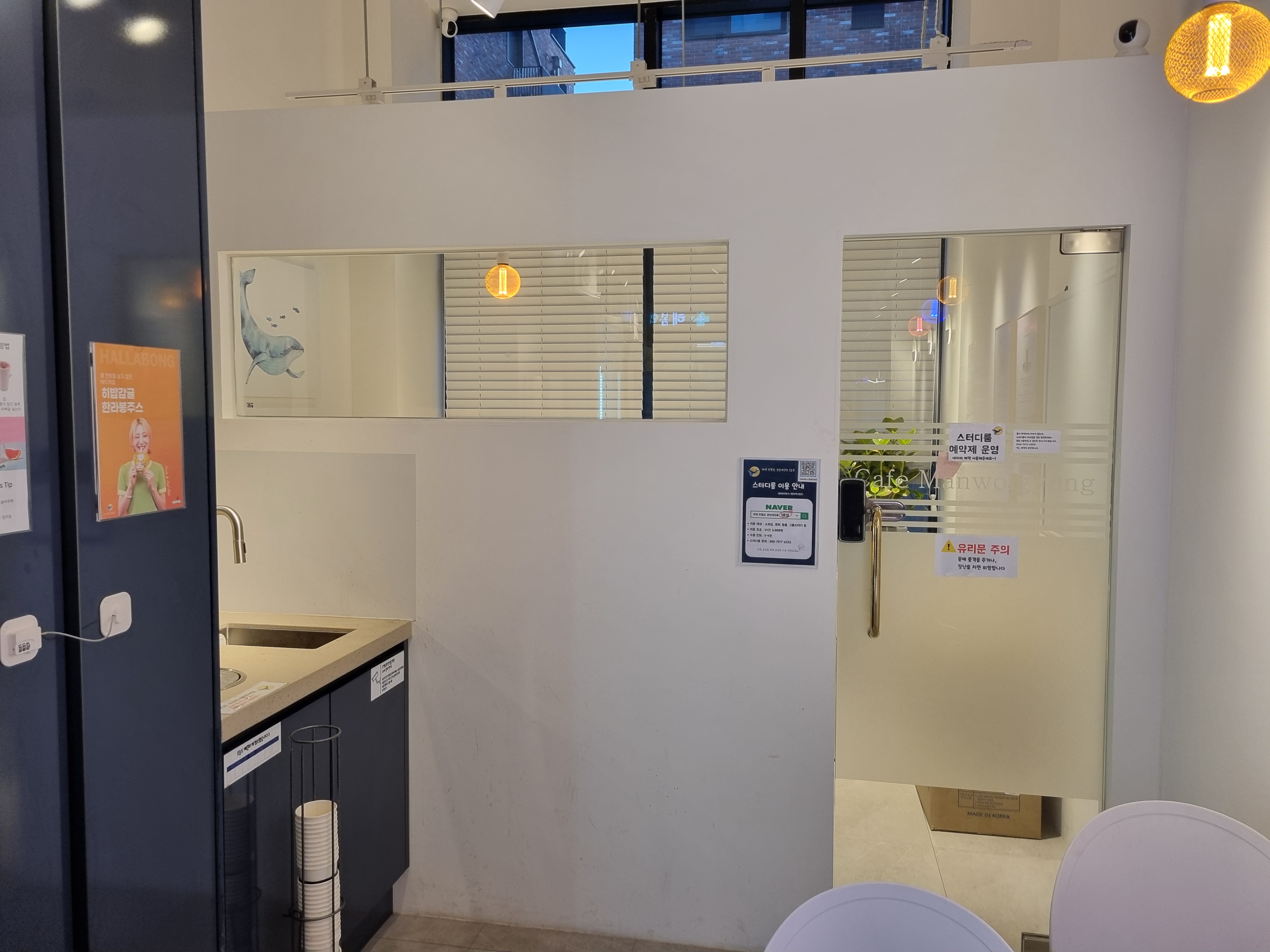 카페 내부에 있는 스터디룸 : 1시간 3,000원 (네이버 예약 후 사용가능)